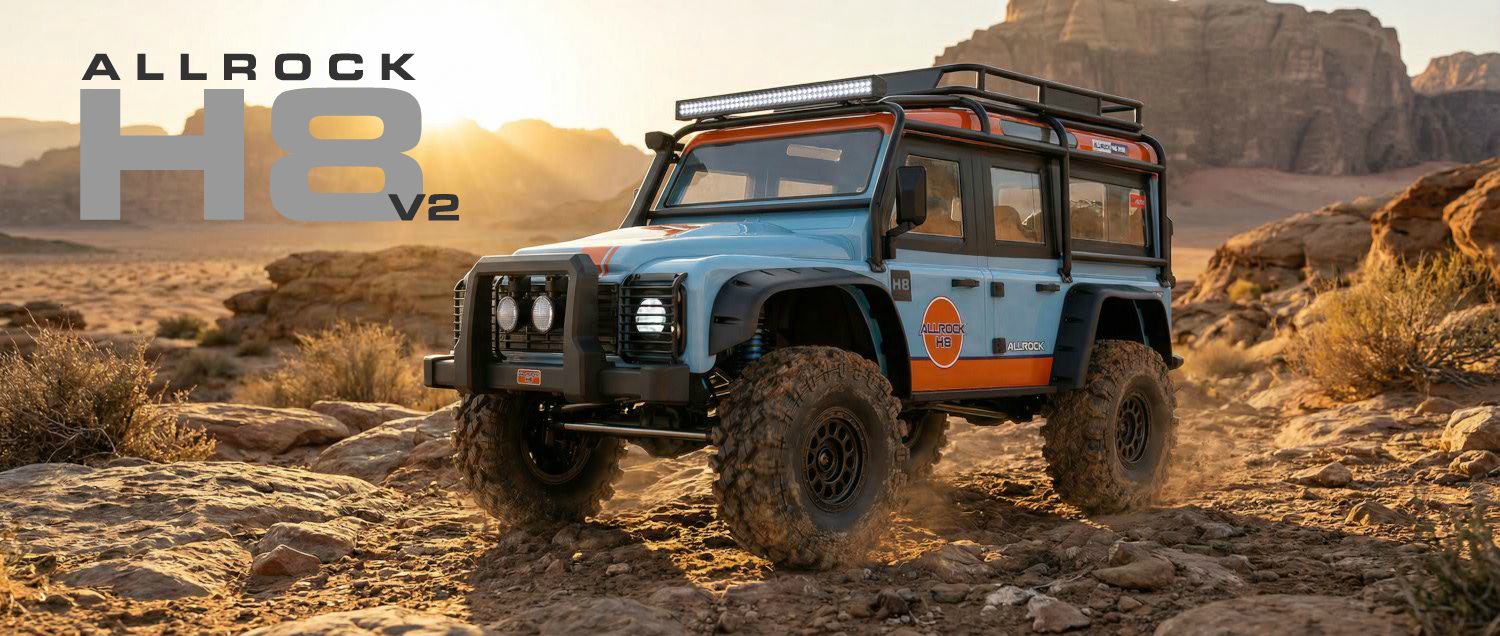 Der ALLRock H8 V2 ist ein High-Class-Crawler im Maßstab 1:8, der durch feinste Ausstattung, ein überarbeitetes Chassis-Layout und herausragende Fahreigenschaften beeindruckt. In der V2-Version sorgen zahlreiche technische Neuerungen für noch mehr Performance im Gelände. Weiterhin ist das Modell mit High-End-Komponenten ausgestattet, darunter ein Brushless-Regler mit intelligentem Drehmoment-Management, dessen Einstellungen bequem über eine Smartphone-App via Bluetooth programmiert werden können.