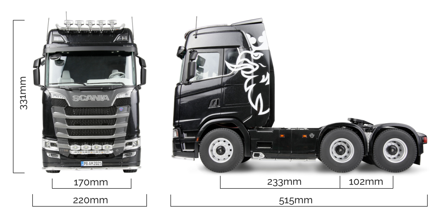 Scania 770 S 6x6 – Die ferngesteuerte Sattelzugmaschine schwarz im exklusiven Design - Maßstab 1:14